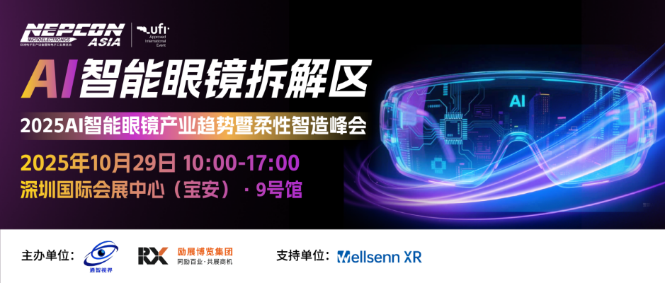 本届展会聚集影目、谷东、唯酷、大朋vr等众多AI智能眼镜终端厂商汇聚,立体呈现从光学技术 、芯片与计算能力、传感器、交互技术、电池技术、轻量化材料等核心部件到终端应用的前沿新品,为企业与广大观众产品创新及研发提供更多的思考。展区配有2025 AI智能眼镜产业趋势暨柔性智造峰会,多位AI智能眼镜知名企业领袖及代表,深入分析智能眼镜产业生态及柔性制造技术,为广大观众揭秘智能眼镜产业技术底层逻辑与发展趋势,撬动智能眼镜蓝海商机!